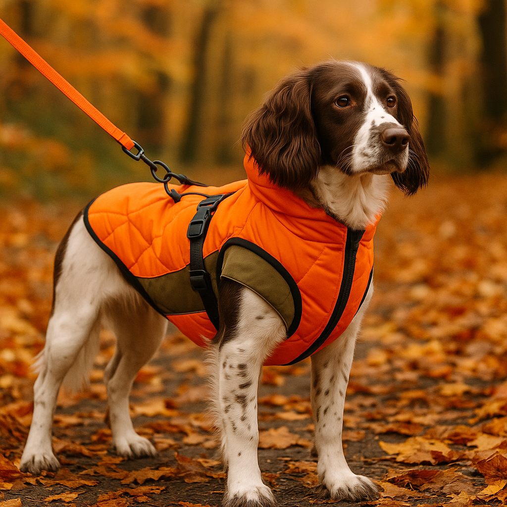 Keep your pup cosy, stylish, and safe this season with our Luxury Autumn Hi-Vis Quilted Dog Jacket – the ultimate blend of warmth, comfort, and practicality. Designed in a vibrant burnt-orange quilted finish with khaki side panels, this jacket isn’t just a fashion statement – it’s built for everyday adventures.
