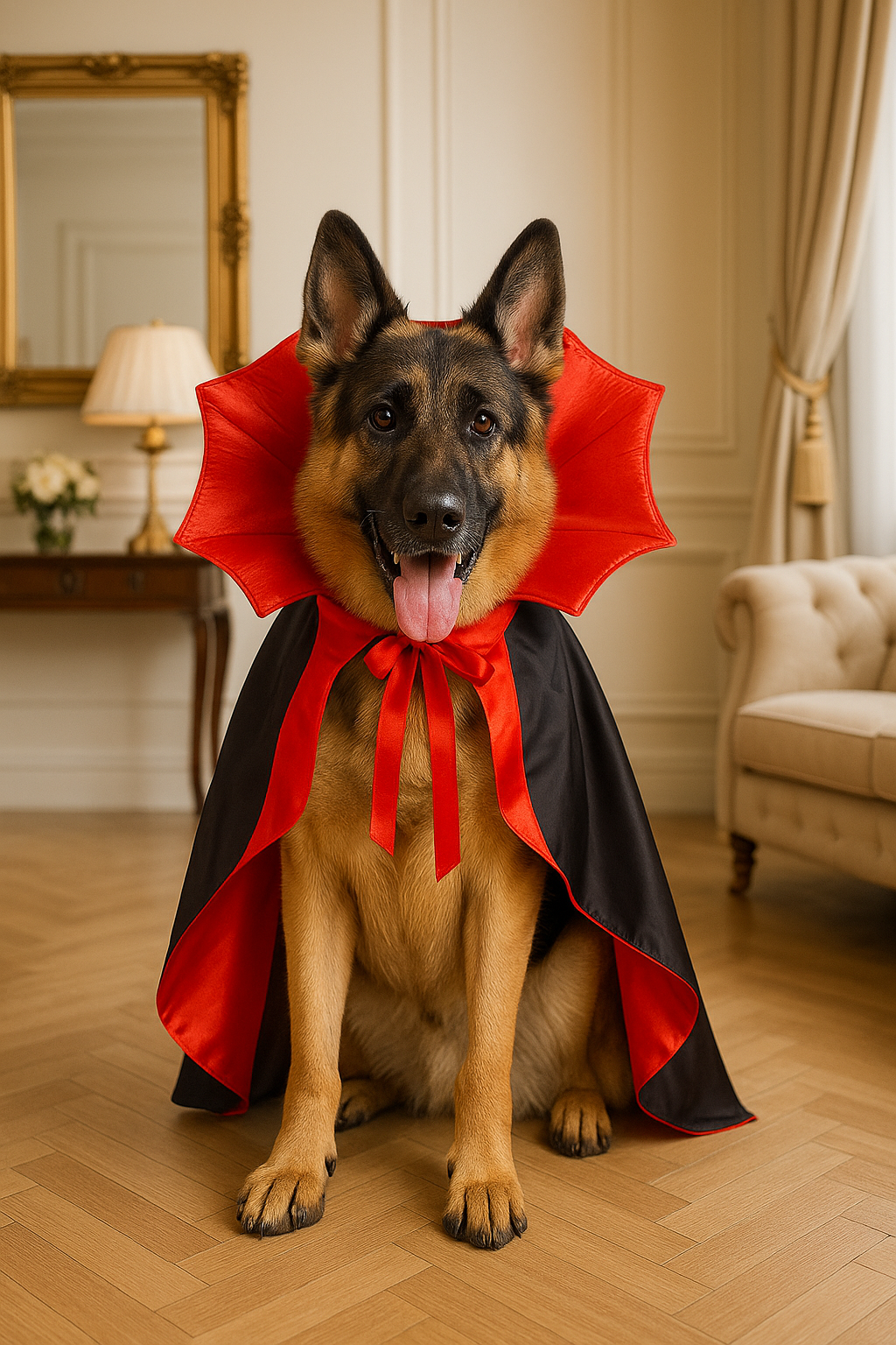 Your little Count (or Countess) will rule the night in style with our Count Droolcula Luxe Cape. Featuring a dramatic high collar, glossy red satin lining, and a ribbon tie front, this one-size-fits-most cape is made to impress. Its lightweight, comfortable design is easy to slip on and off, making it ideal for photos, parties, or greeting trick-or-treaters at the door.