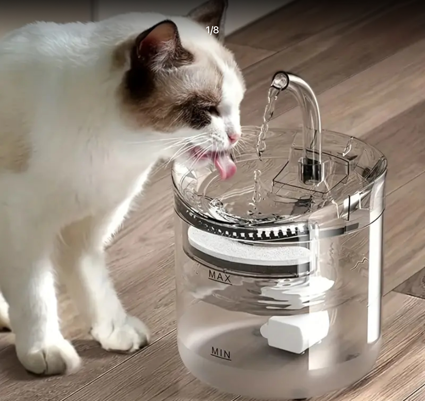 This beautifully engineered 1.8L transparent pet water fountain blends aesthetic brilliance with intelligent hydration. With a 120ml top reservoir and 360° filtration system, it keeps your fur baby’s water clean, cool, and constantly flowing—encouraging even the most diva of cats or the pickiest pups to hydrate in style.