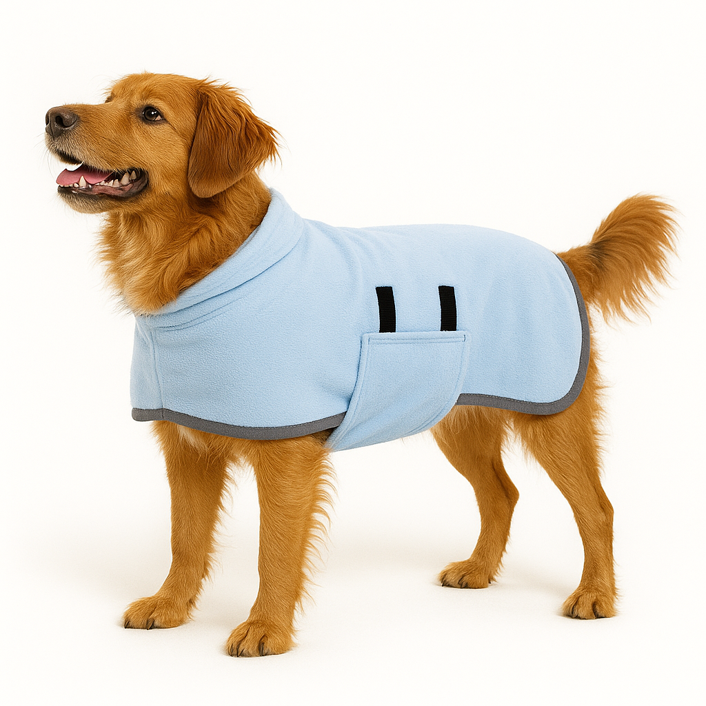 Crafted from premium ultra-absorbent fleece, this robe is soft enough to nap in, smart enough to show off, and functional enough to actually dry your fur baby in style. Whether you’re heading from the bath to the boudoir, or from the beach to the Bentley, this robe has your pup covered – literally.