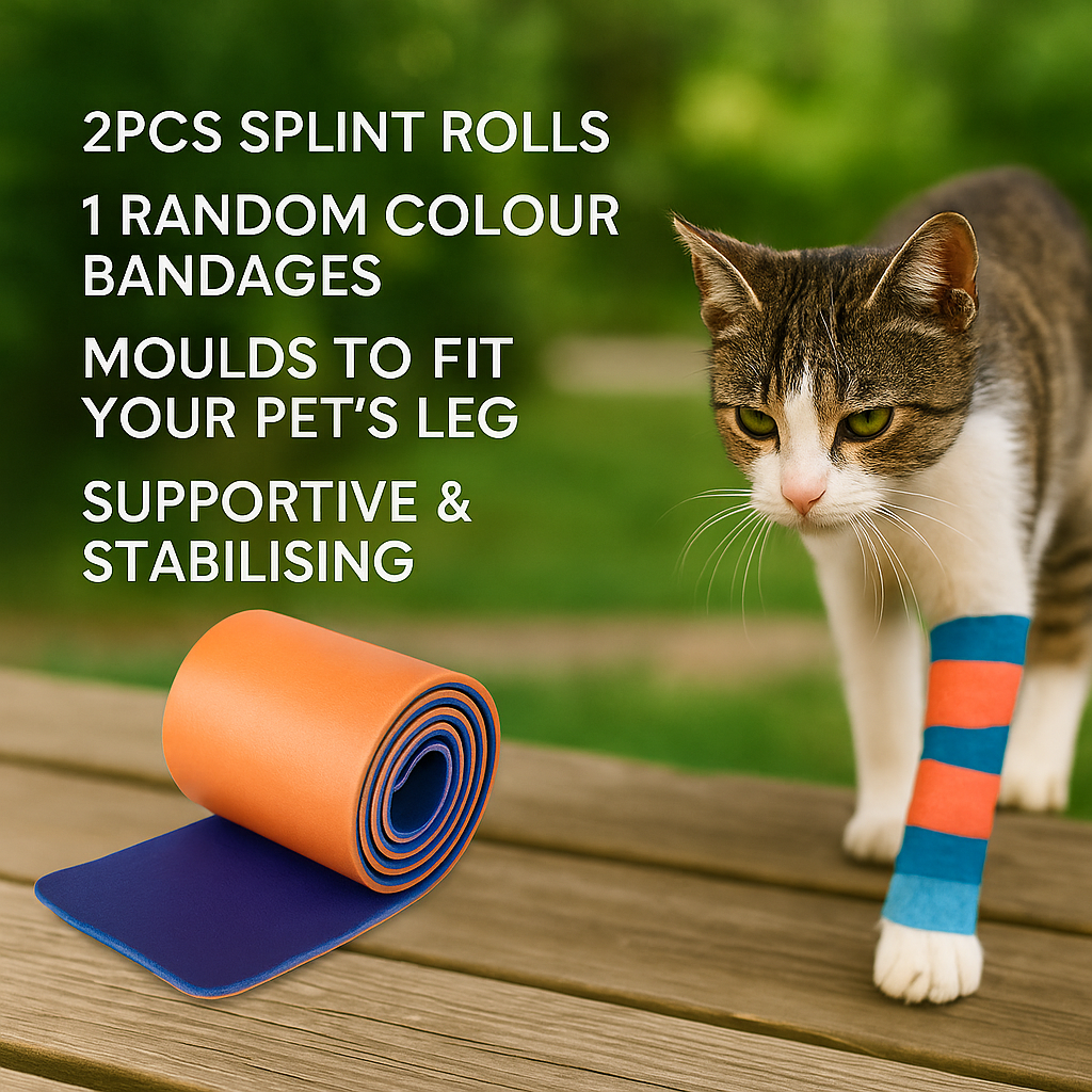 - 🧡 2 flexible foam splint rolls (moulds to fit legs, tails or paws)